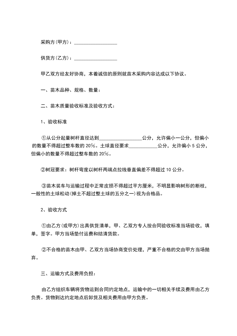 1、甲方应按合同规定的时间和质重,提供给乙方所需的苗木,保证不提供假苗。
