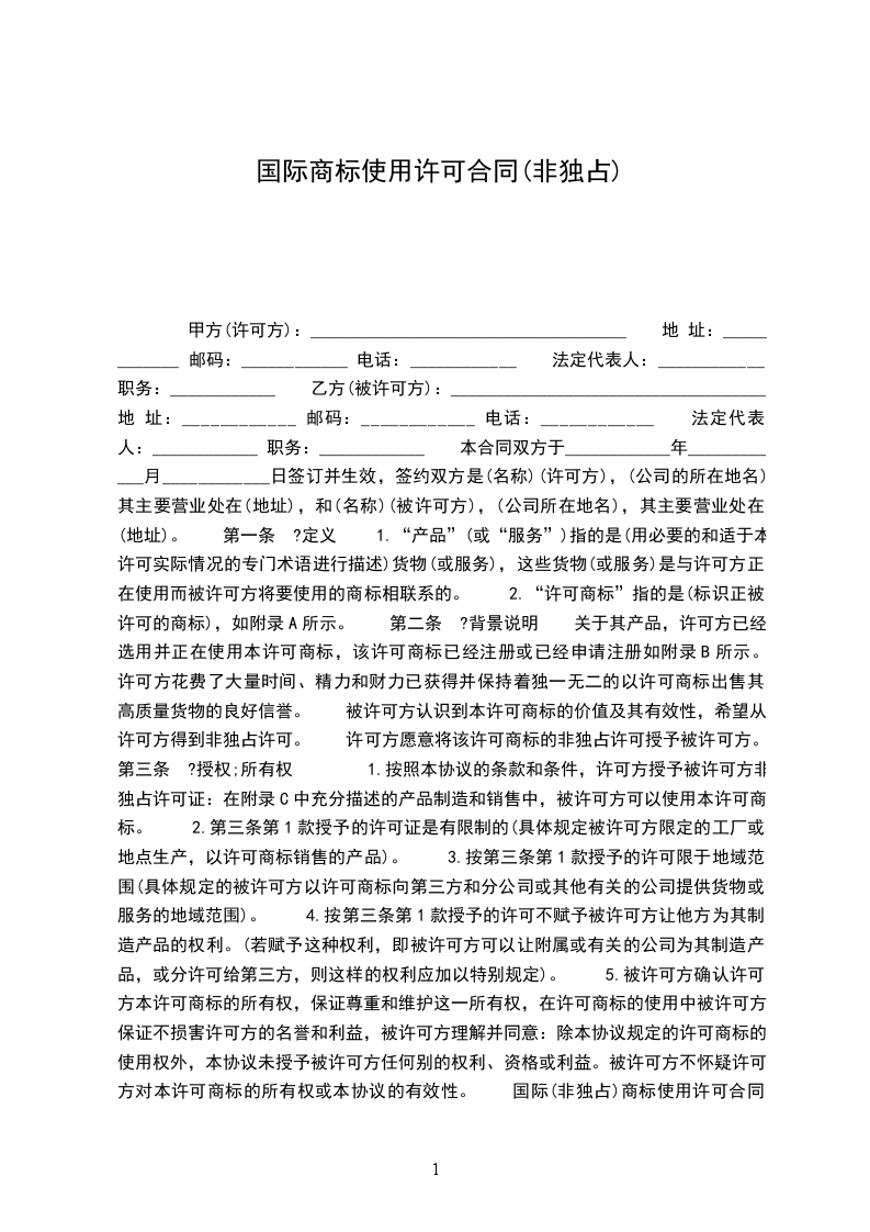 1.按照本协议的条款和条件,许可方授予被许可方非独占许可证:在附录c中充分描述的产品制造和销售中,被许可方可以使用本许可商标。