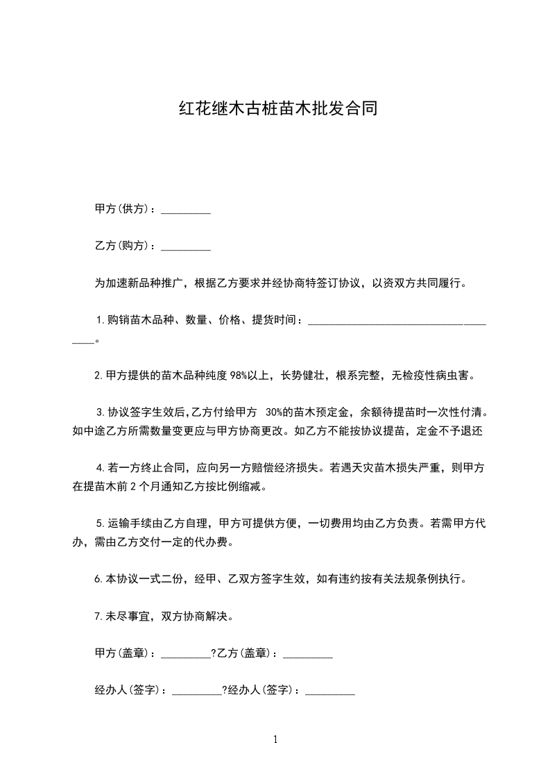 红花继木古桩苗木批发合同
