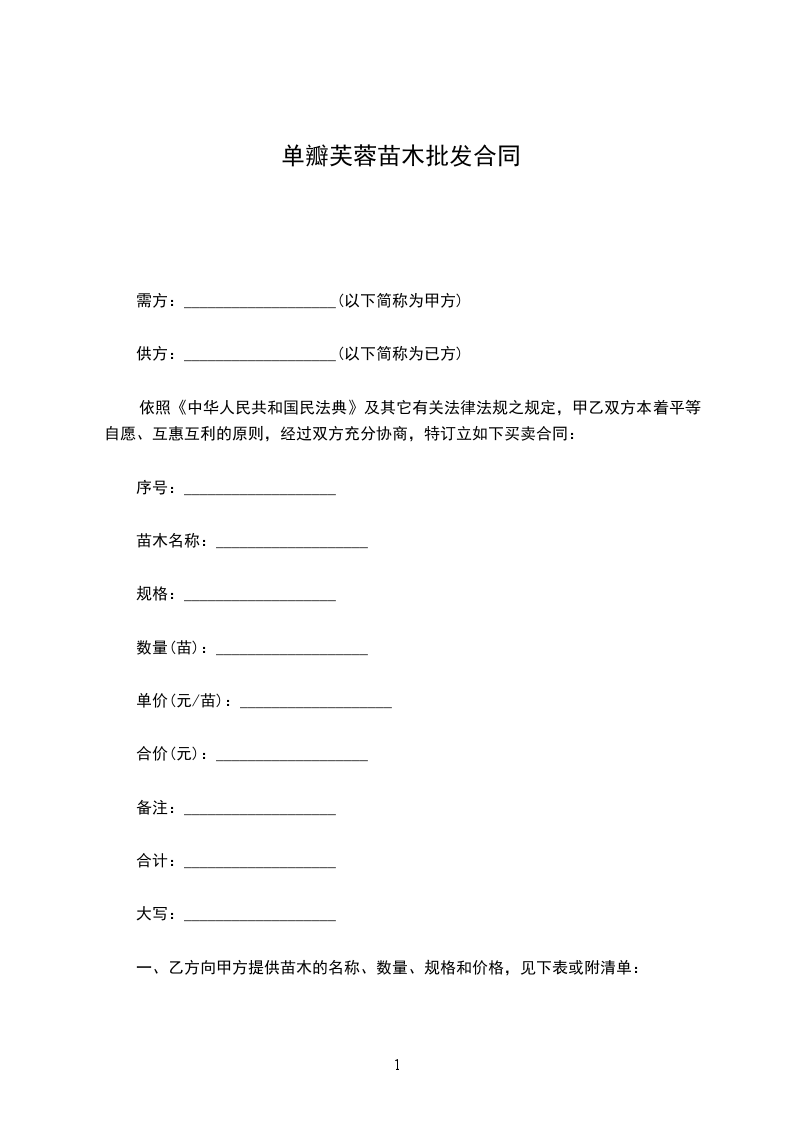 需方:___________________(以下简称为甲方)