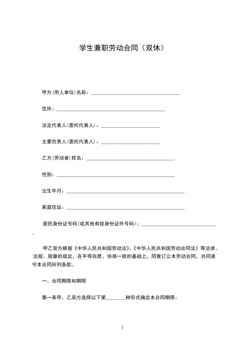 1.甲方安排乙方在________________部门________________岗位工作,乙方须根据甲方公司各项规章制度履行职责。