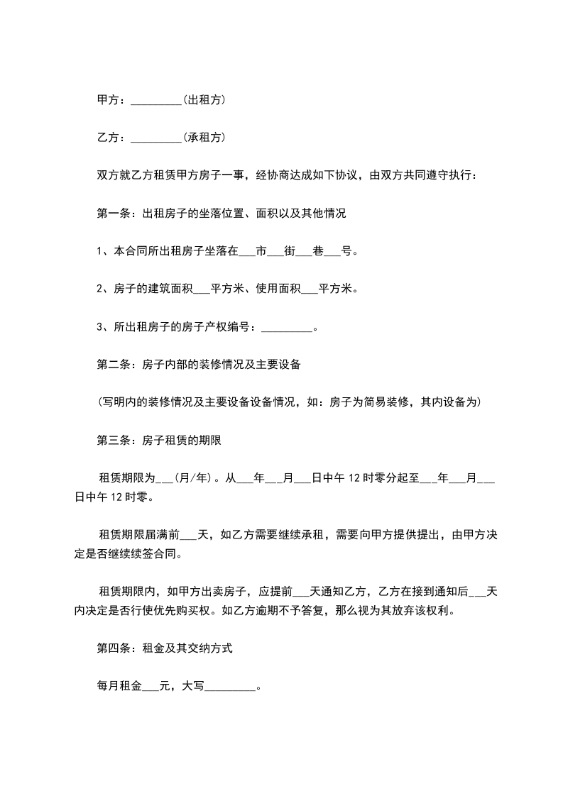1、本合同所出租房子坐落在___市___街___巷___号。