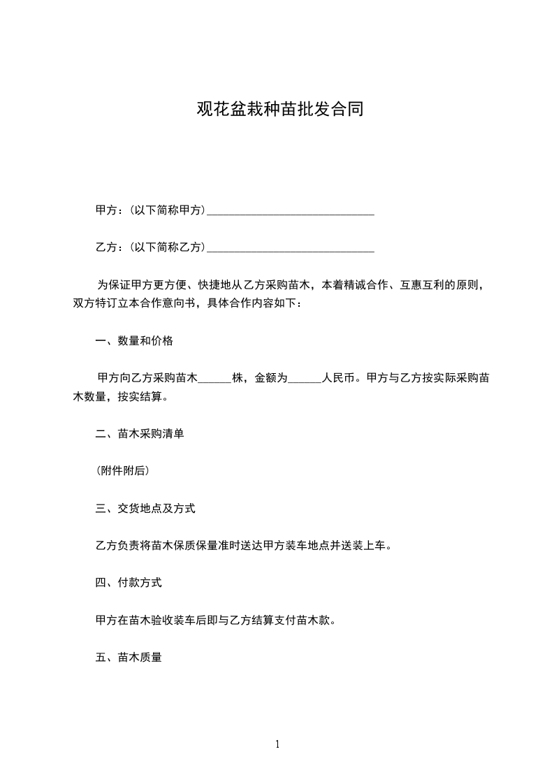 甲方向乙方采购苗木______株,金额为______人民币。甲方与乙方按实际采购苗木数量,按实结算。