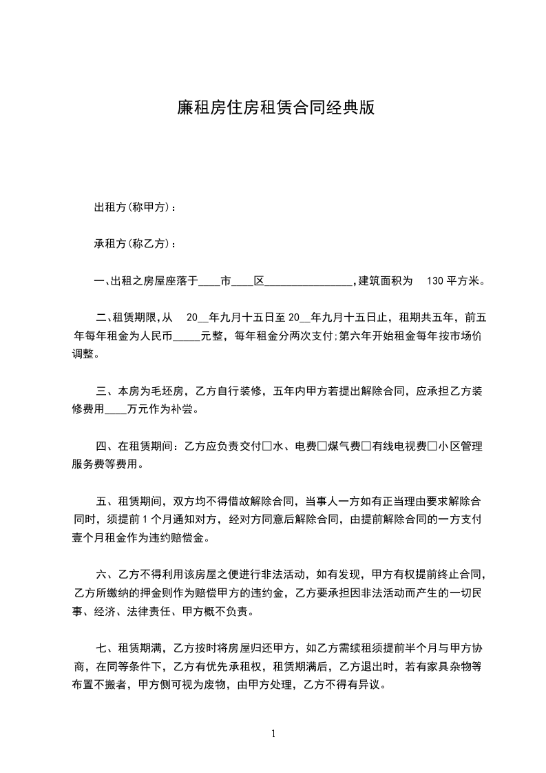 三、本房为毛坯房,乙方自行装修,五年内甲方若提出解除合同,应承担乙方装修费用____万元作为补尝。