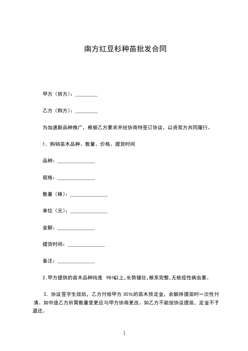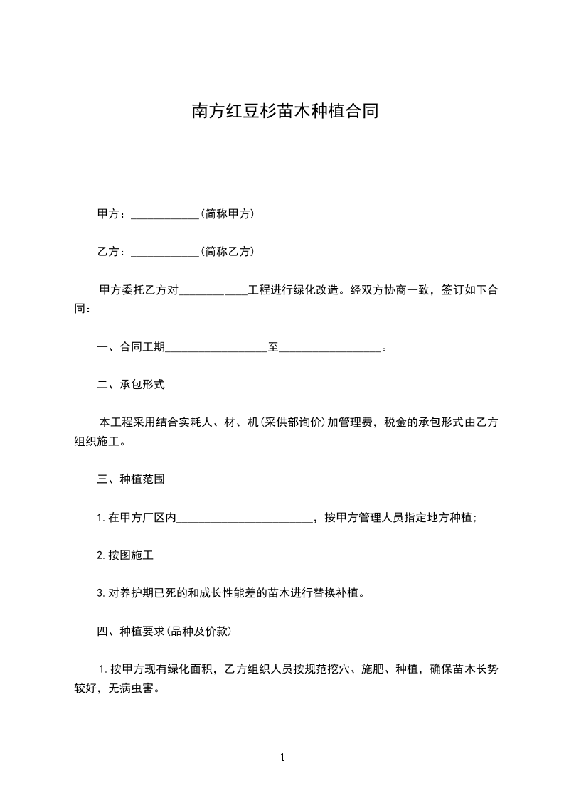 南方红豆杉种苗批发合同