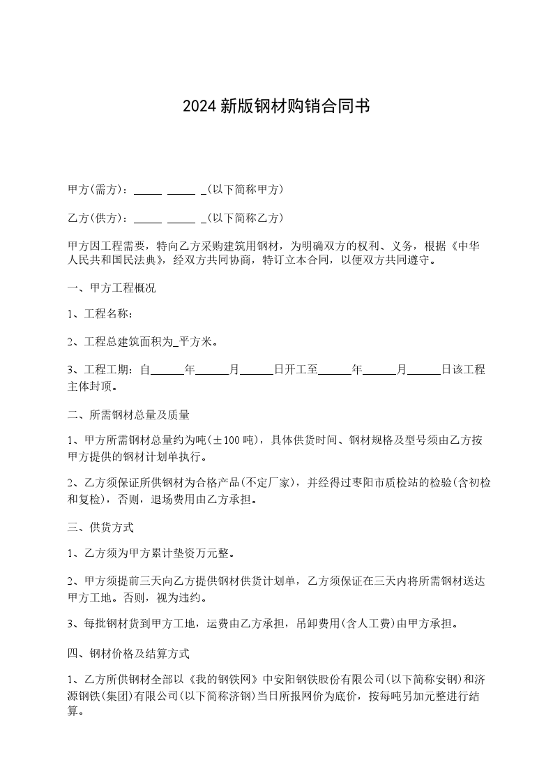 1、甲方所需钢材总量约为吨(±100吨),具体供货时间、钢材规格及型号须由乙方按甲方提供的钢材计划单执行。