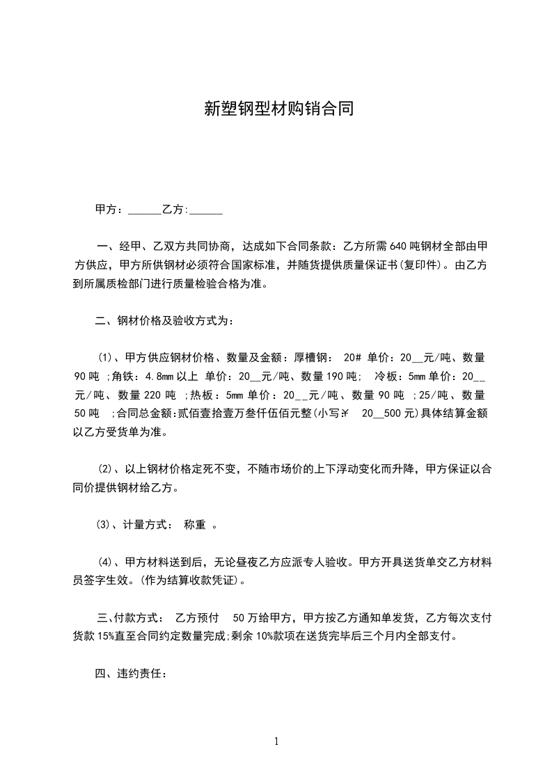 1、以上各条款须由甲乙双方共同遵守,若有任何一方违约,须由违约方赔偿给守约方所供钢材总额50%的违约金,且双方账目立即结清。