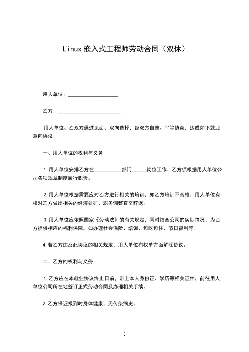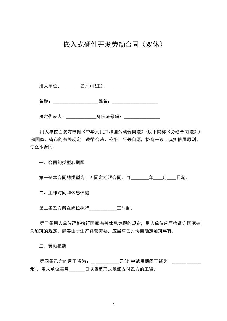 1、执行标准工时制度。乙方每天工作时间不超过________小时,每周工作不超过______小时。每周休息日为________。