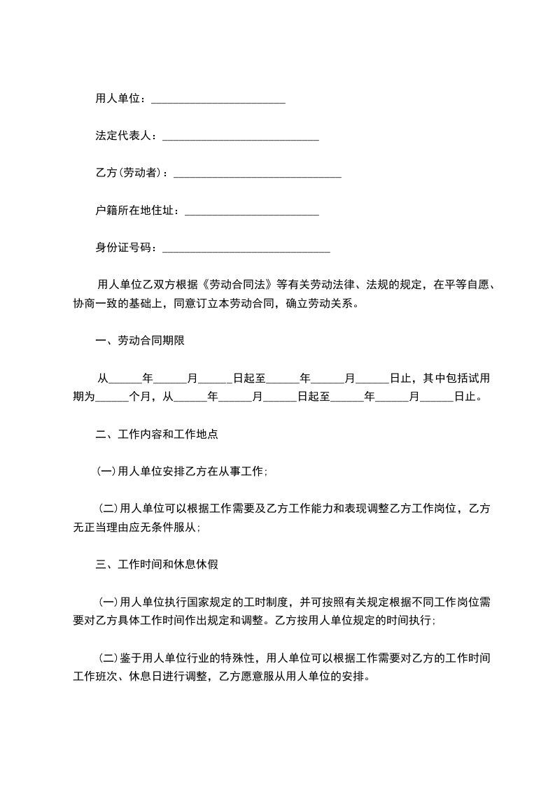 1、固定期限:自______年______月______日起至______年______月______日止。(其中试用期自______年______月______日至______年______月______日止,期限为______个月)。