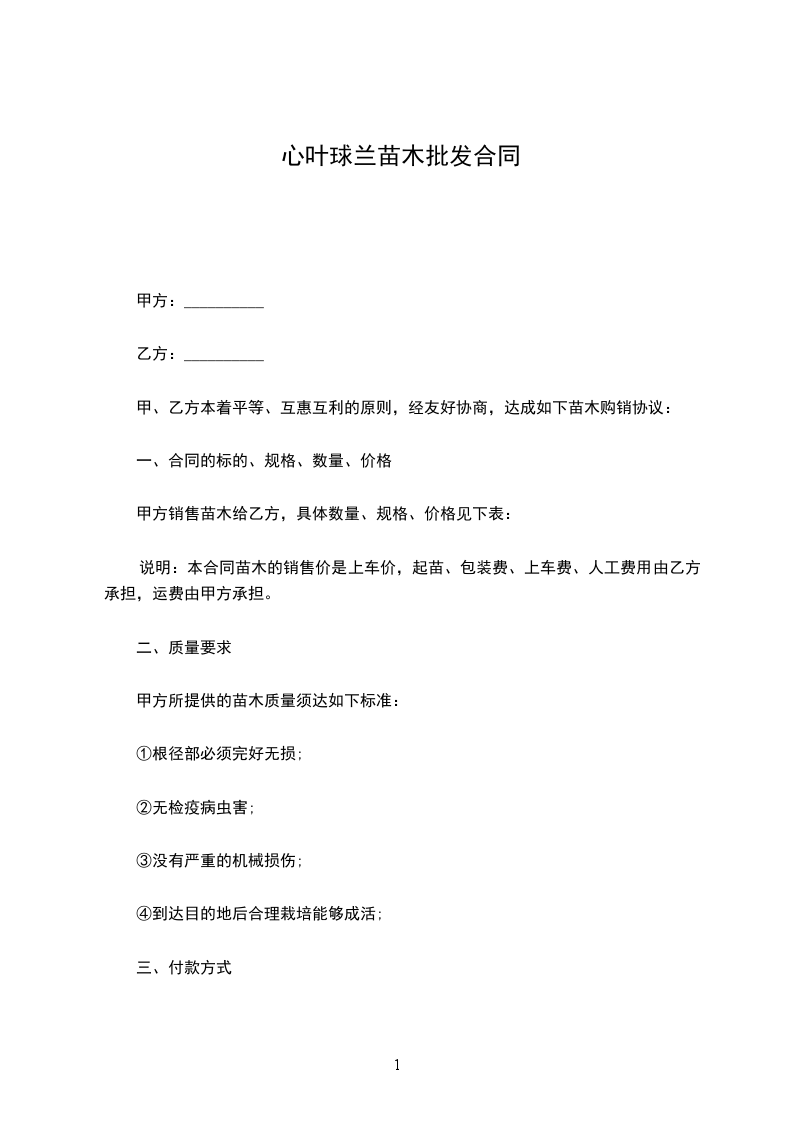 1、甲方应按合同规定的时间和质重,提供给乙方所需的苗木,保证不提供假苗。