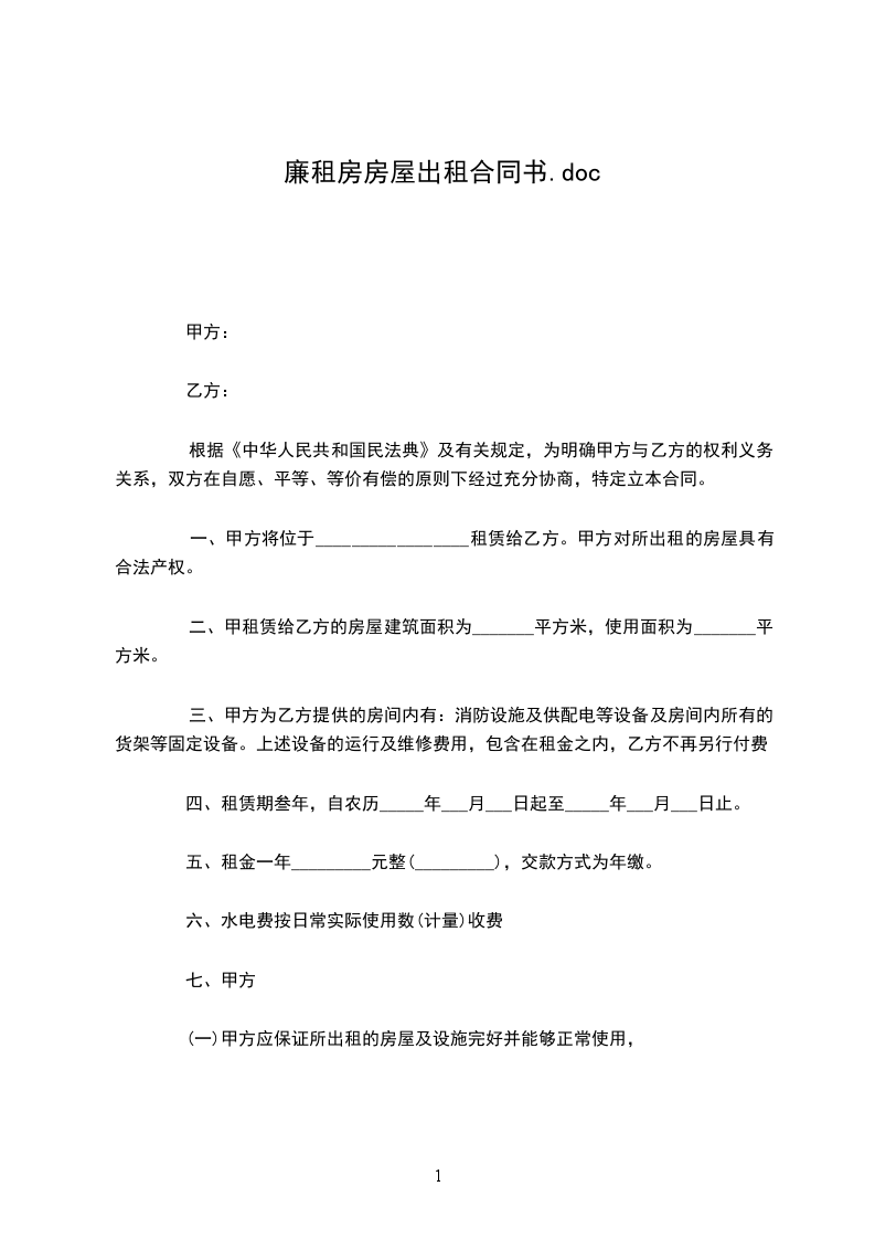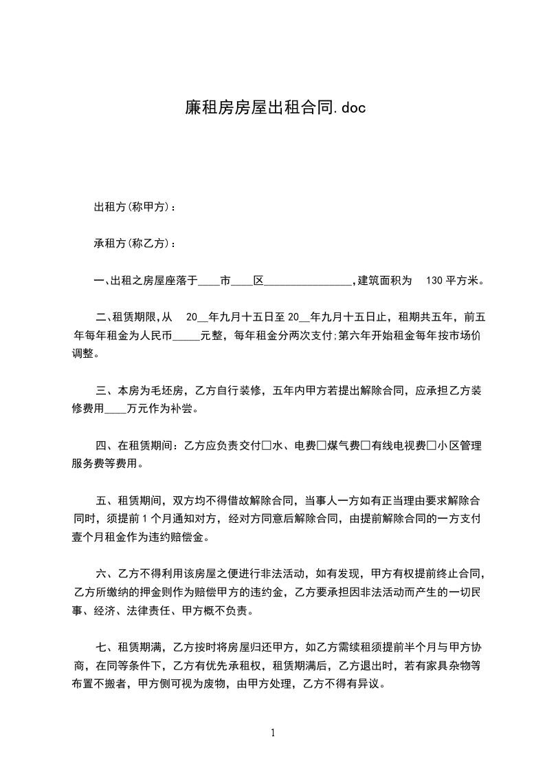 一、租房从_________年_________月_________日起至_________年_________月_________日止。