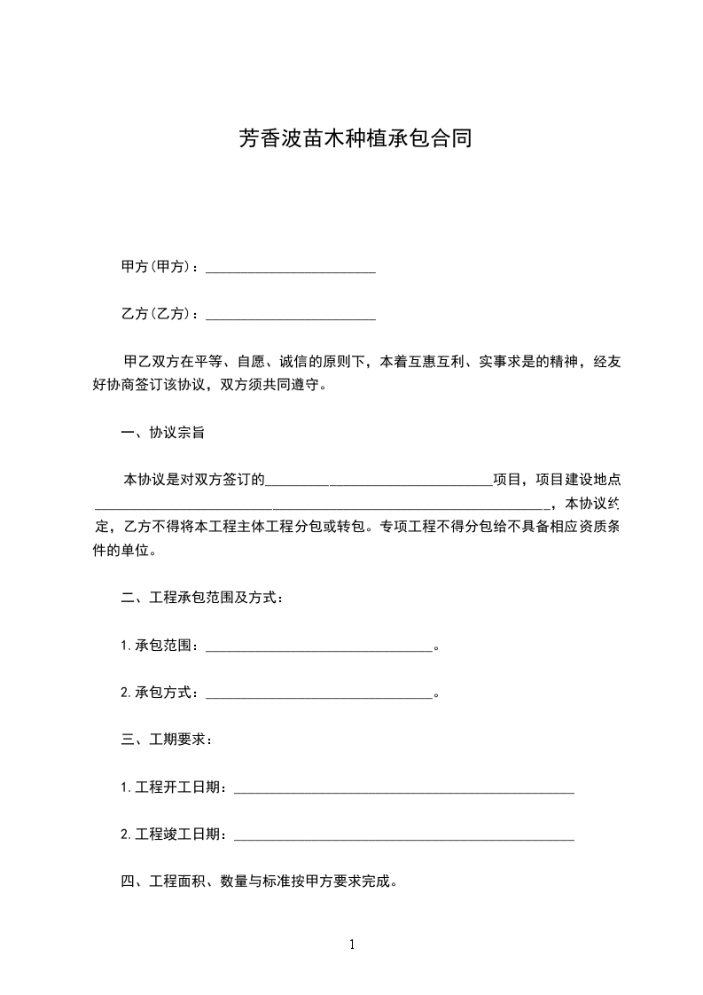 一、甲方向乙方采购苗木株,金额为人民币。甲方与乙方按实际采购苗木数量,按实结算。