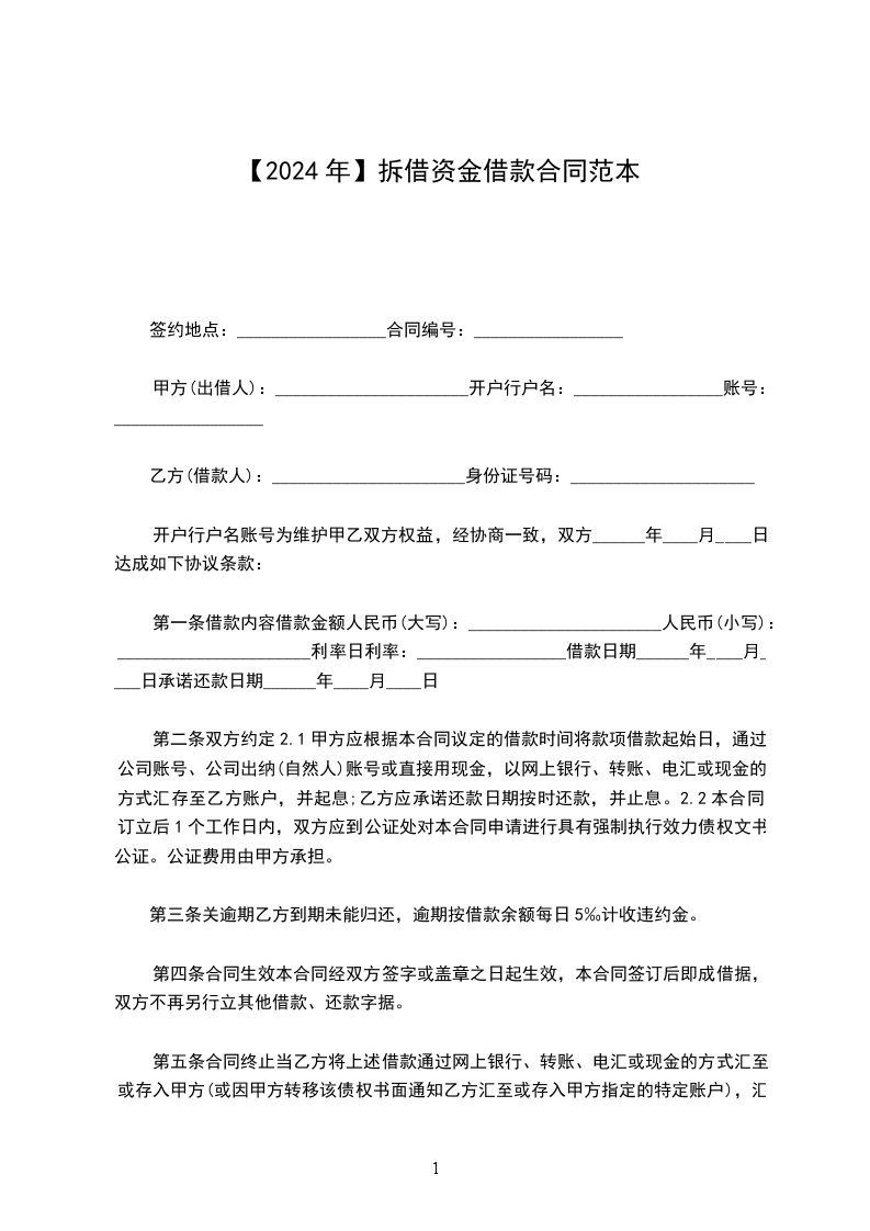 三、逾期与提前还款:拆借资金必须按本合同规定的还款时间归还,逾期部分,自逾期日起按每日万分之五加收罚息。拆借合同未到期,未经双方同意不得提前还款,否则违约方要赔偿提前还款造成的经济损失。