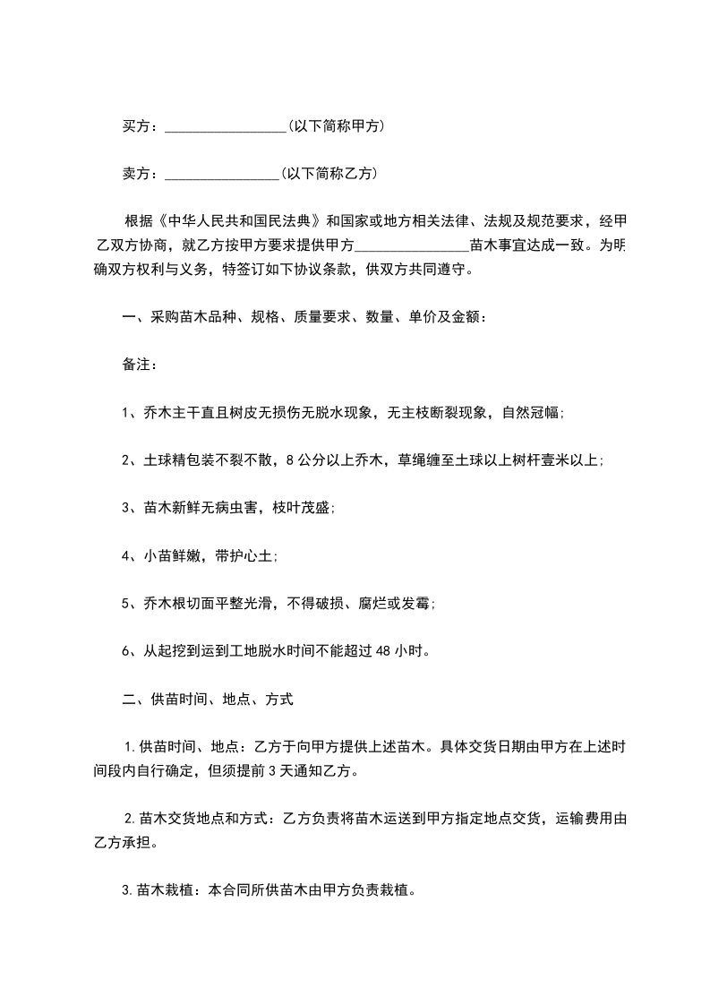 交货地点:乙方苗圃所在地大货车可行驶的公路边。