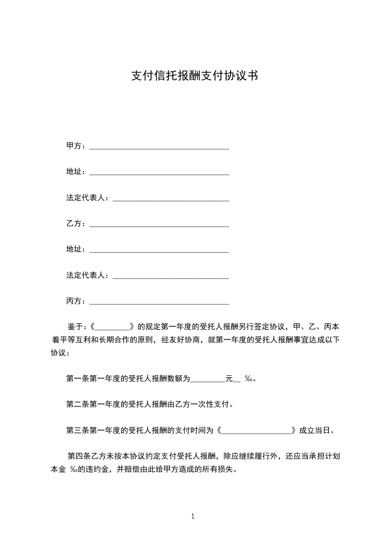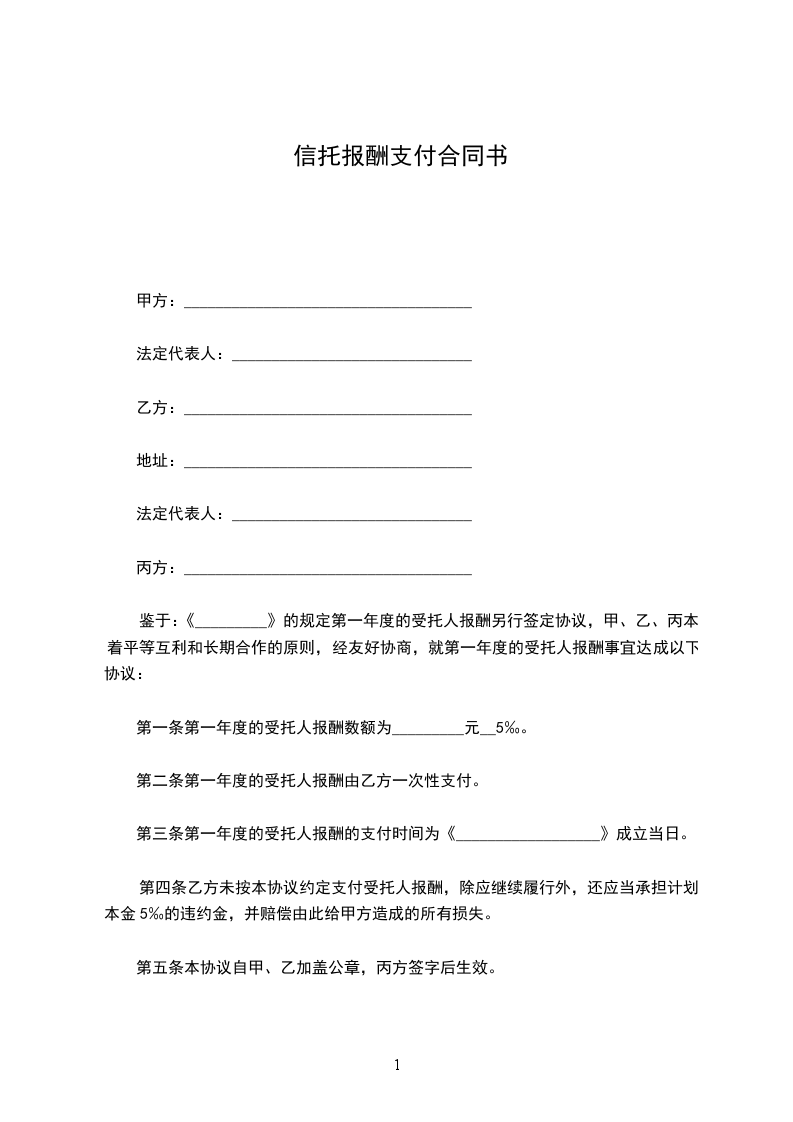 第一条 第一年度的受托人报酬数额为_________元×5‰。