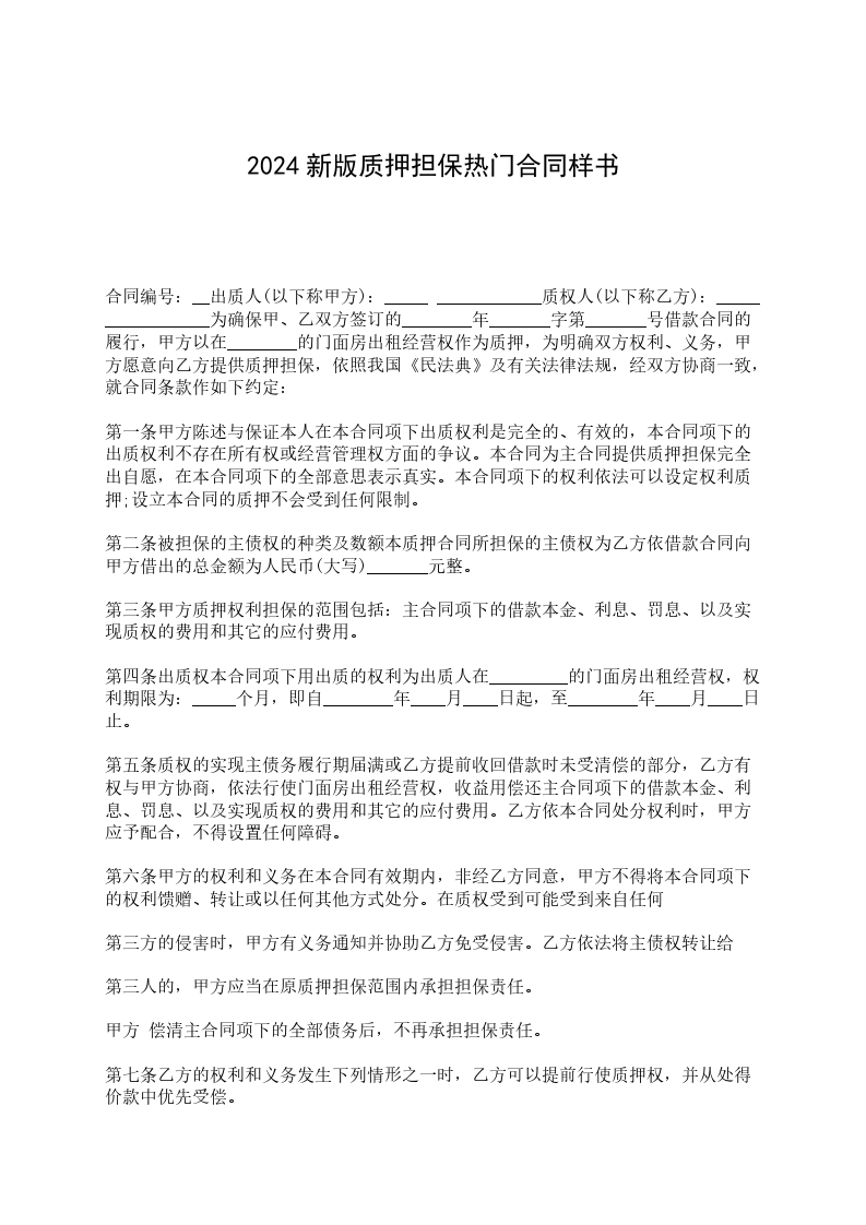 合同编号:__出质人(以下称甲方):_____ ____________质权人(以下称乙方):_____ ____________为确保甲、乙双方签订的________年_______字第_______号借款合同的履行,甲方以在________的门面房出租经营权作为质押,为明确双方权利、义务,甲方愿意向乙方提供质押担保,依照我国《民法典》及有关法律法规,经双方协商一致,就合同条款作如下约定: