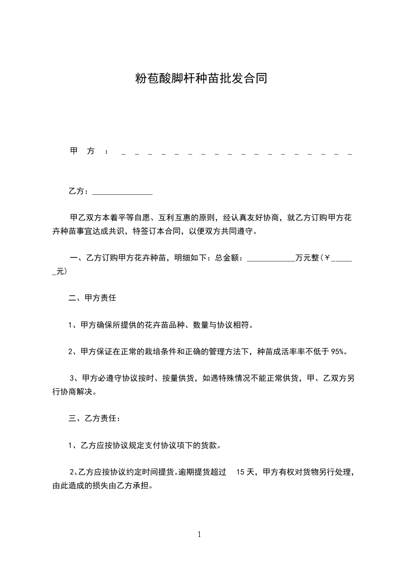 一、乙方订购甲方花卉种苗,明细如下:总金额:____________万元整(¥______元)