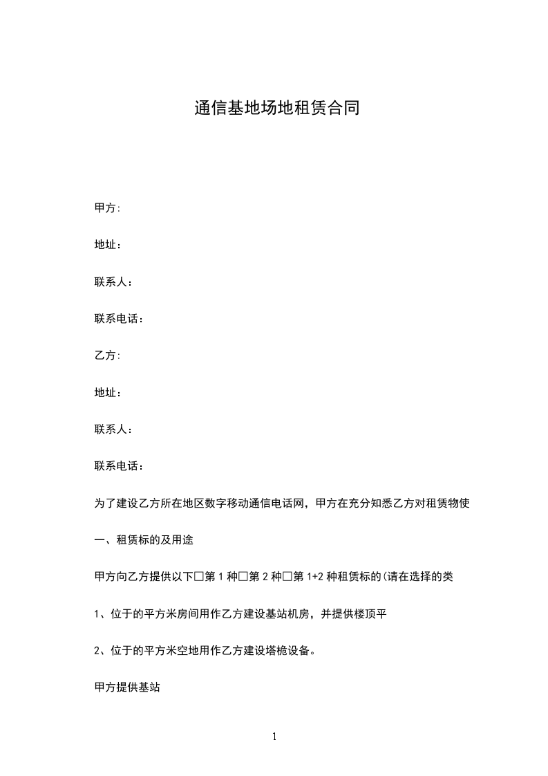 第一条 租借方向出租方租借停车用地为_________平方米,地点:____________________。