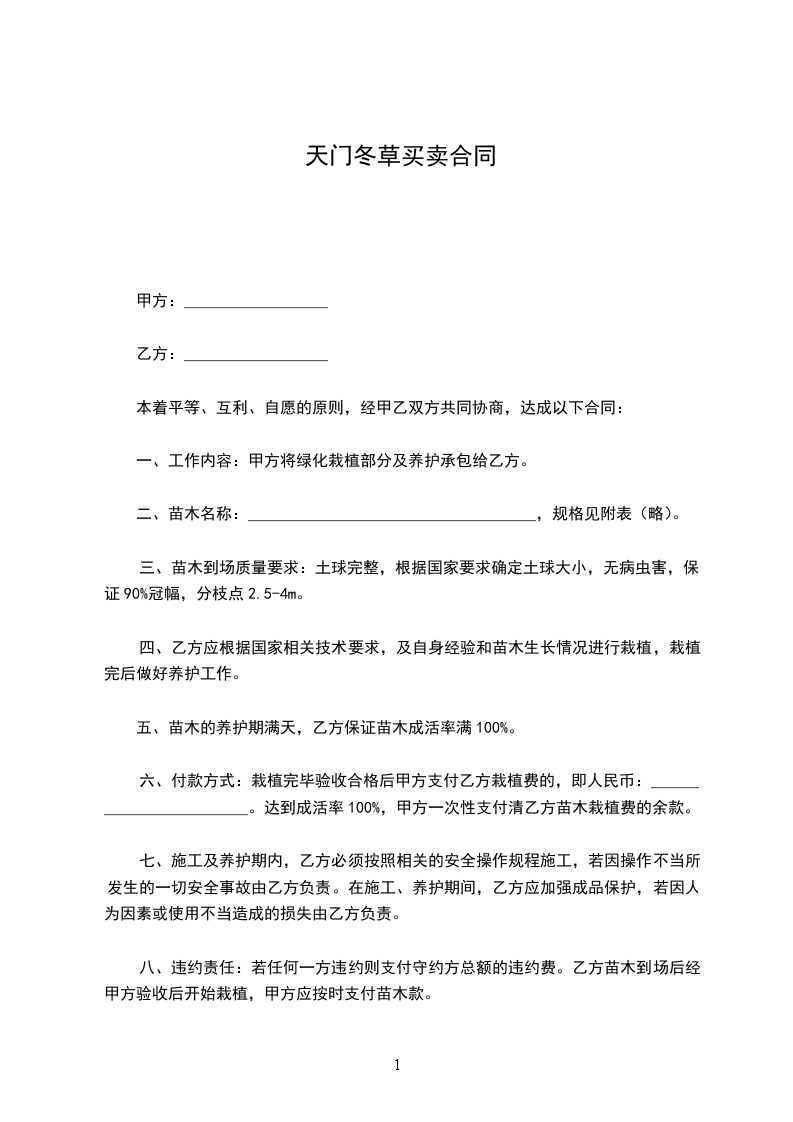 一、甲方向乙方采购苗木株,金额为人民币甲方与乙方按实际采购苗木数量,按实结算。