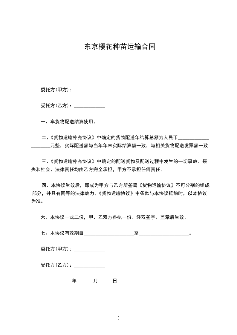 双方同意花草苗木采取先送货后付费的原则,甲方应在_______年_______月_______日前将上述苗木一次性送给乙方,乙方在苗木货到一周内付款给甲方,总付款额是人民币:_____________________(大写:_____________________)。