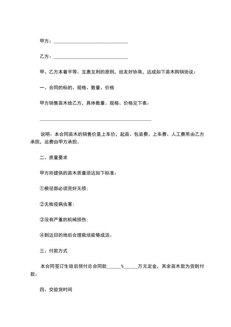 1、甲方应按合同规定的时间和质重,提供给乙方所需的苗木,保证不提供假苗。