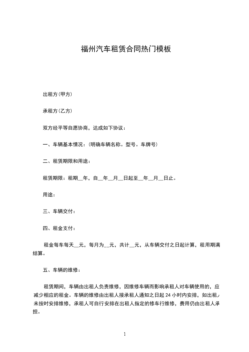 承租方所租的车型为_________,车牌号为_________,务必使用_________号汽油(柴油)。租赁车辆的车况以发车的双方签字确认的《租赁车辆交接单》为准。