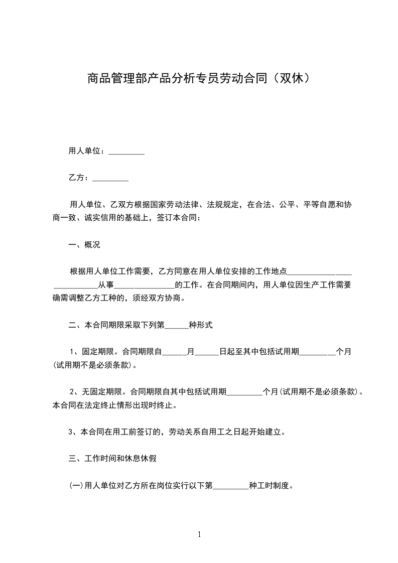 1、固定期限:自______年______月______日起至______年______月______日止。(其中试用期自______年______月______日至______年______月______日止,期限为______个月)。
