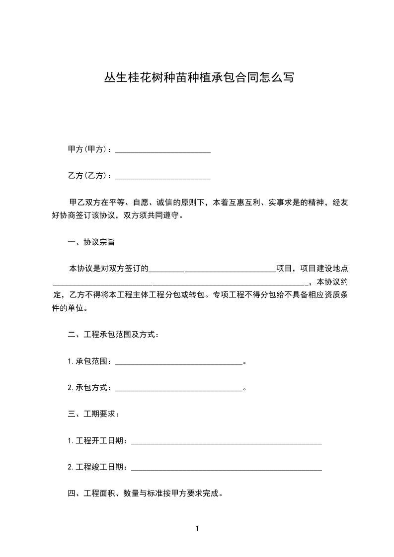 一、甲方向乙方采购苗木_______株,金额为人民币________.甲方与乙方按实际采购苗木数量,按实结算。