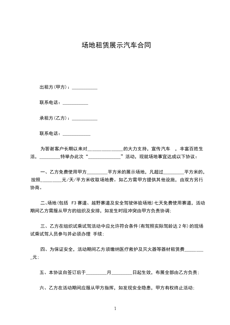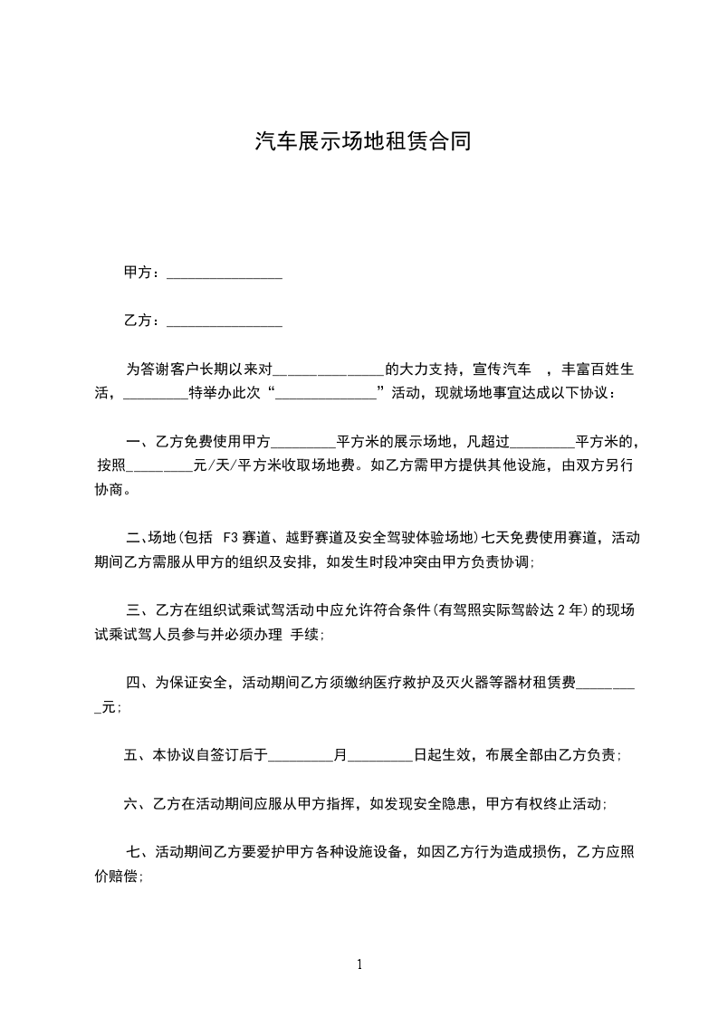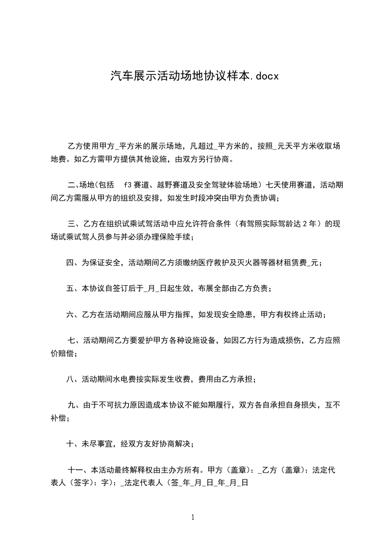 为答谢客户长期以来对_________的大力支持,宣传汽车文化,丰富百姓生活,_________特举办此次“_________”活动,现就场地事宜达成以下协议: