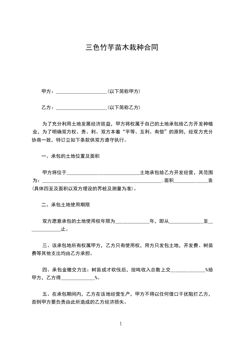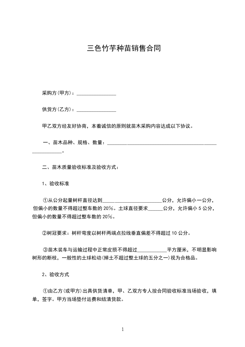 三色竹芋种苗批发合同