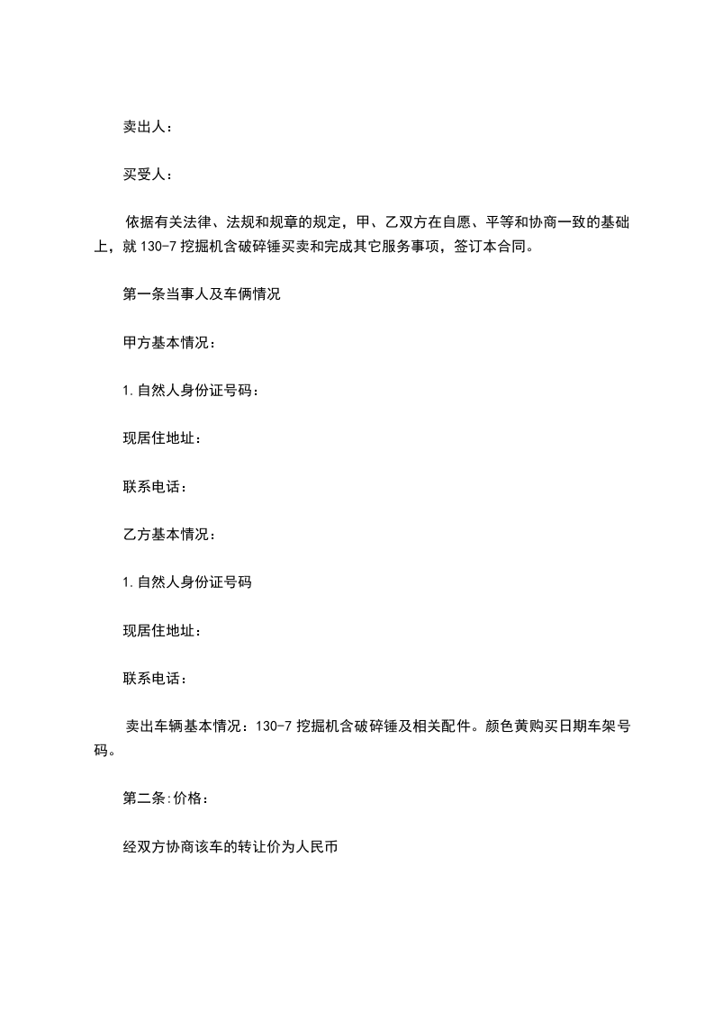 经平等友好协商,甲乙双方就甲方所有的挖掘机转让给乙方一事达成一致协议如下: