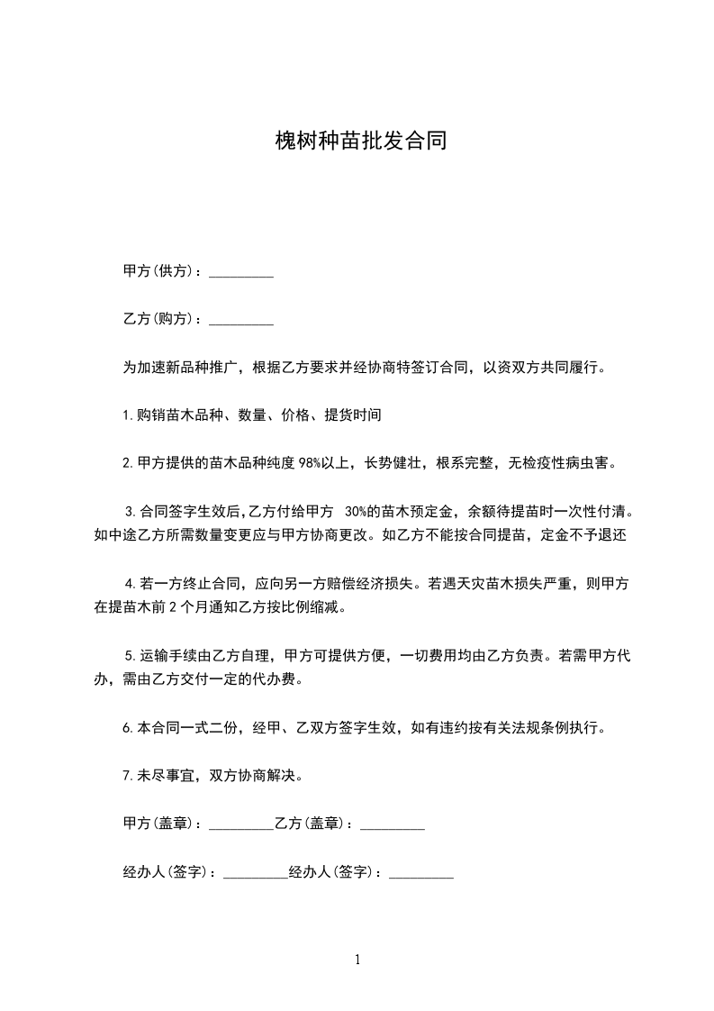 1.购销苗木品种、数量、价格、提货时间