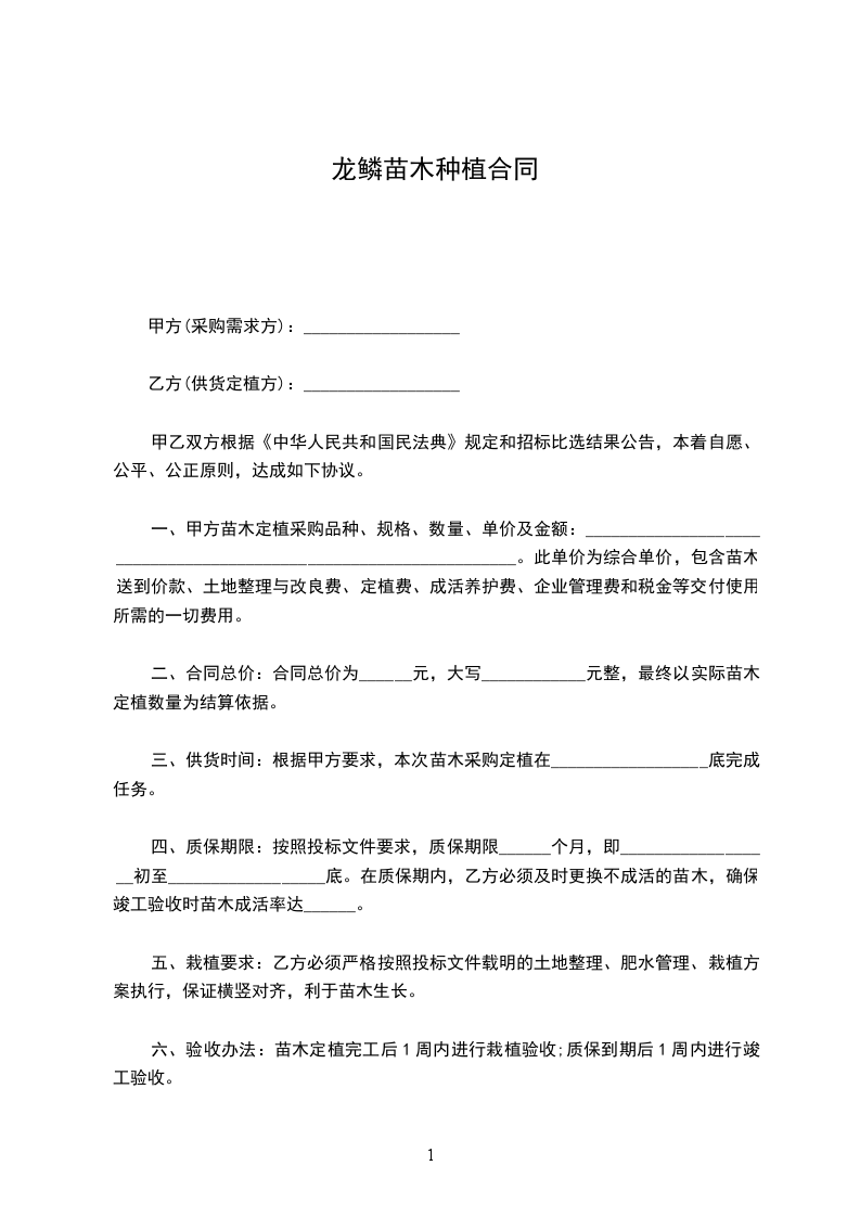 甲方因造林需要,拟购买一批苗木,经过对乙方场综合考察,甲方决定向乙方定购部分苗木,经双方共同协商,达成如下协议:
