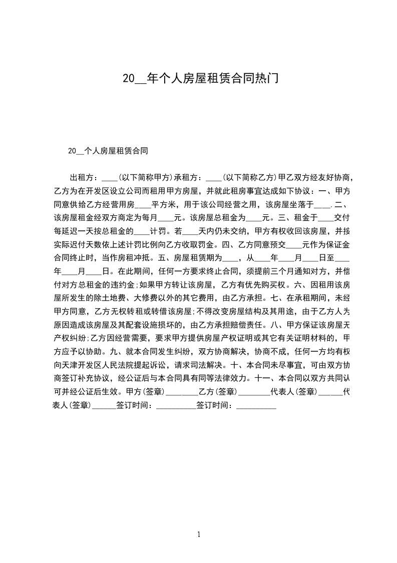 1、甲、乙双方约定,甲方交付该房屋时,乙方庆向甲方支付房屋租赁保证金,保证金为__________个月的租金,即(_____币)_________元。