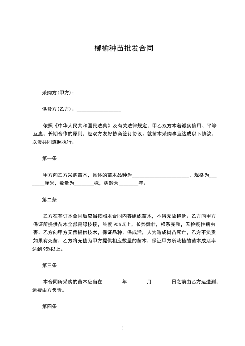 依照《中华人民共和国民法典》及有关法律规定,甲乙双方本着诚实信用、平等互惠、长期合作的原则,经双方友好协商签订协议。就苗木采购事宜达成以下协议,以资共同遵照执行: