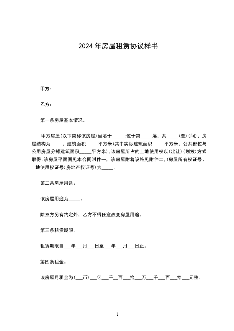 一、房屋座落地点:面积:________,用途:_________,起租时水度,电度,燃气度及房屋装修:______________________。