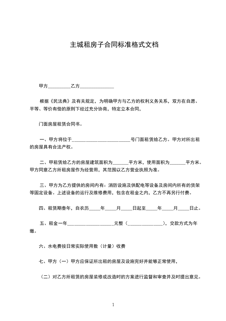 一、甲方将位于_________________________号门面租赁给乙方。甲方对所出租的房屋具有合法产权。