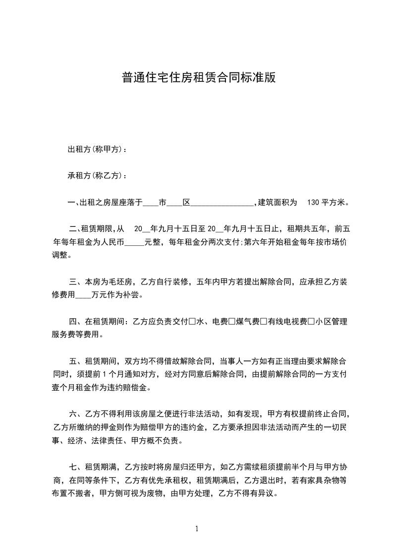 三、本房为毛坯房,乙方自行装修,五年内甲方若提出解除合同,应承担乙方装修费用____万元作为补尝。