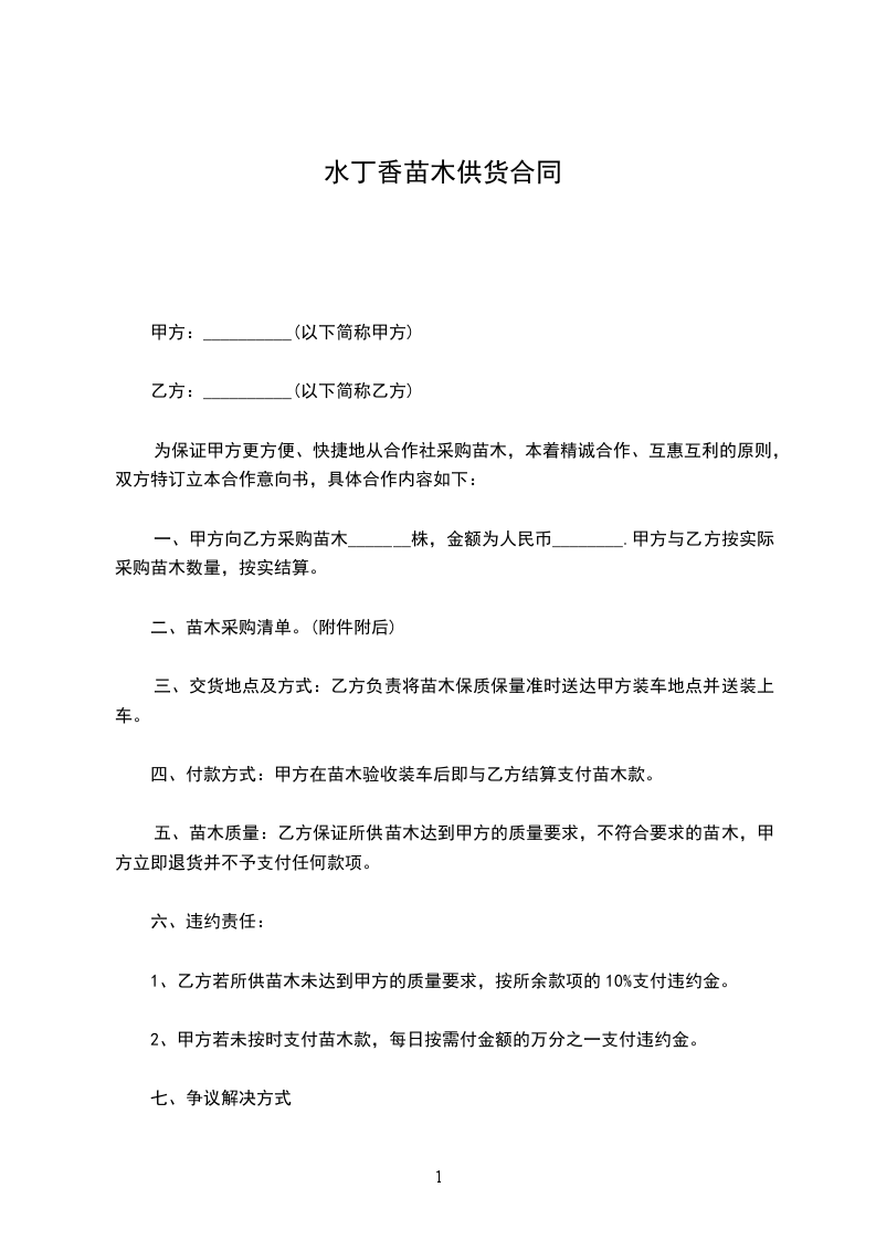 一、甲方向乙方采购苗木_______株,金额为人民币________.甲方与乙方按实际采购苗木数量,按实结算。