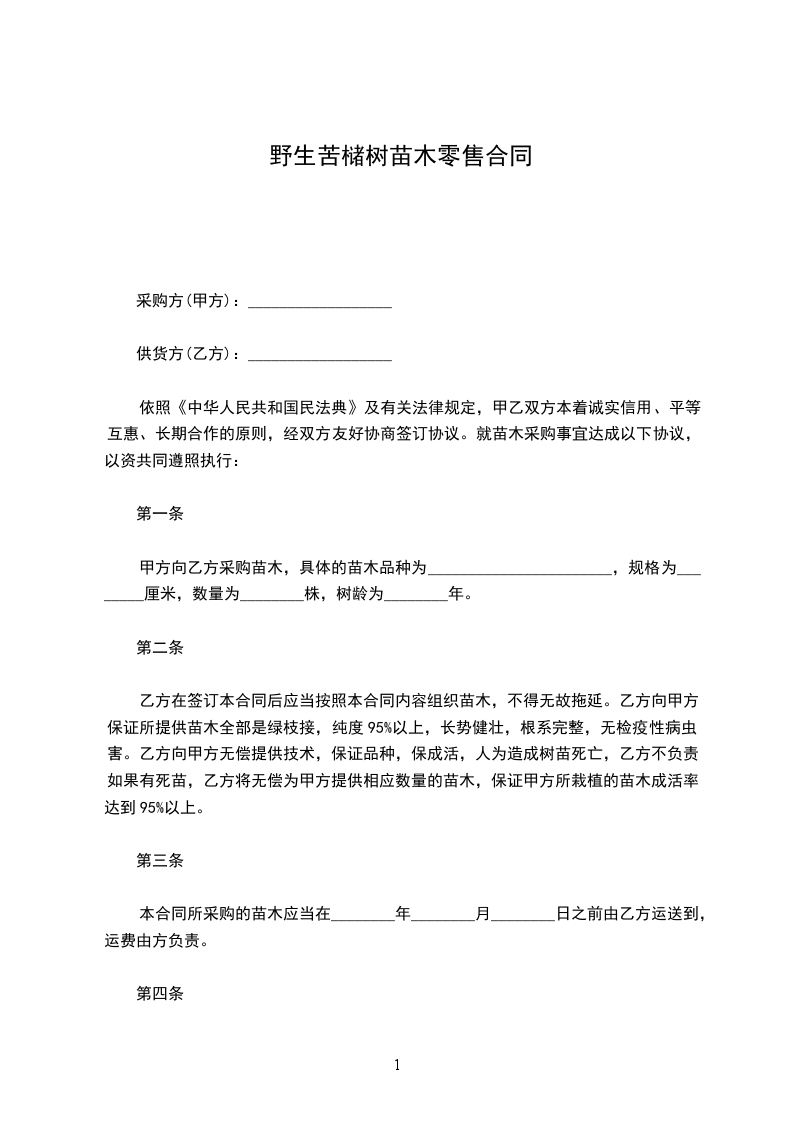 依照《中华人民共和国民法典》及有关法律规定,甲乙双方本着诚实信用、平等互惠、长期合作的原则,经双方友好协商签订协议。就苗木采购事宜达成以下协议,以资共同遵照执行: