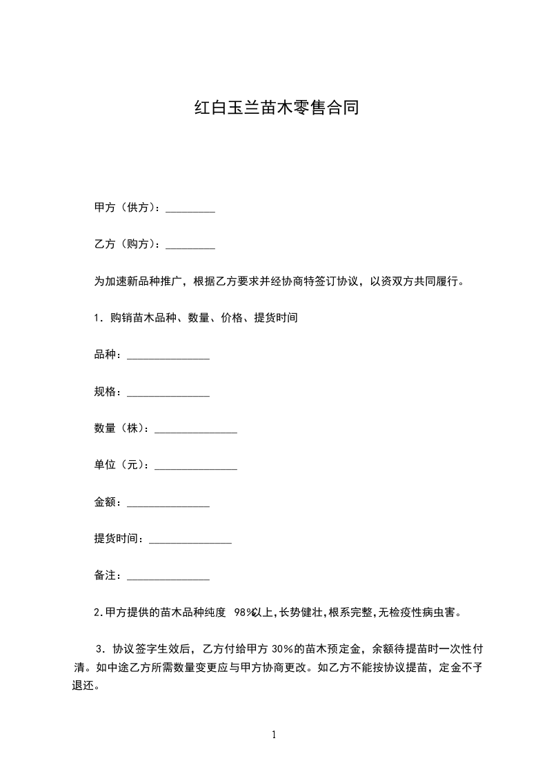 购苗方:________________(以下简称甲方)