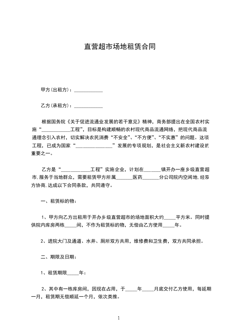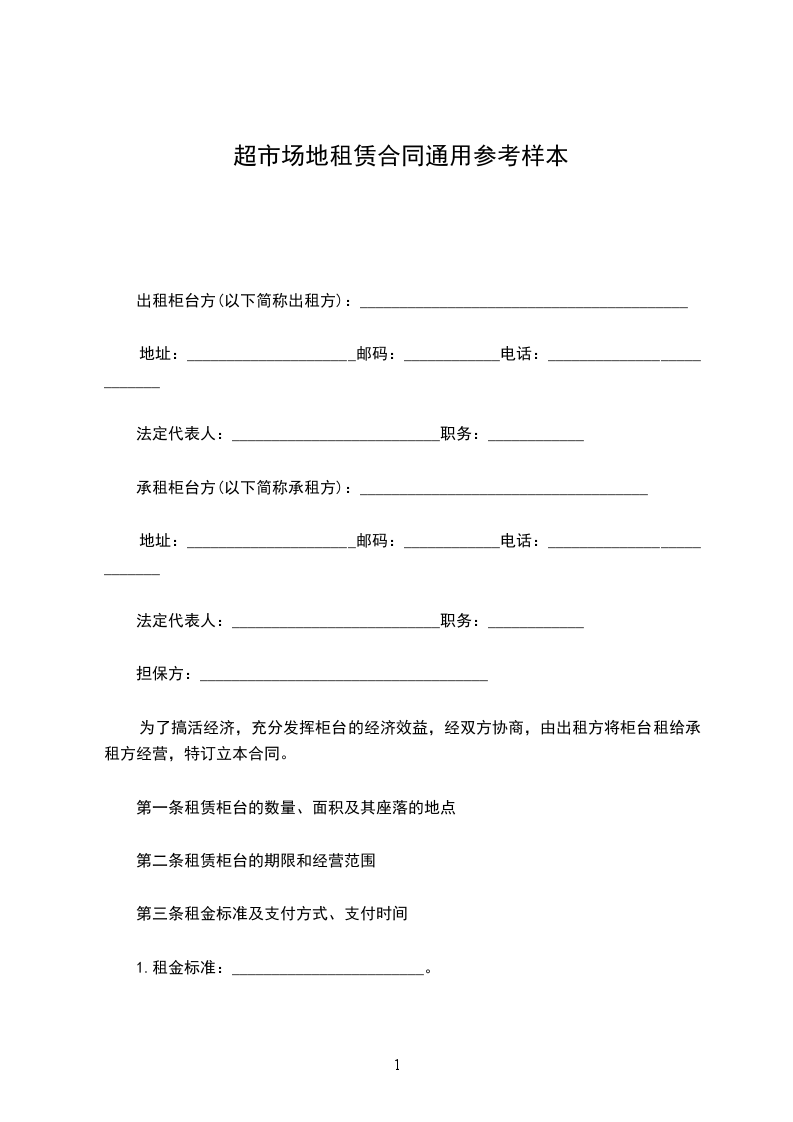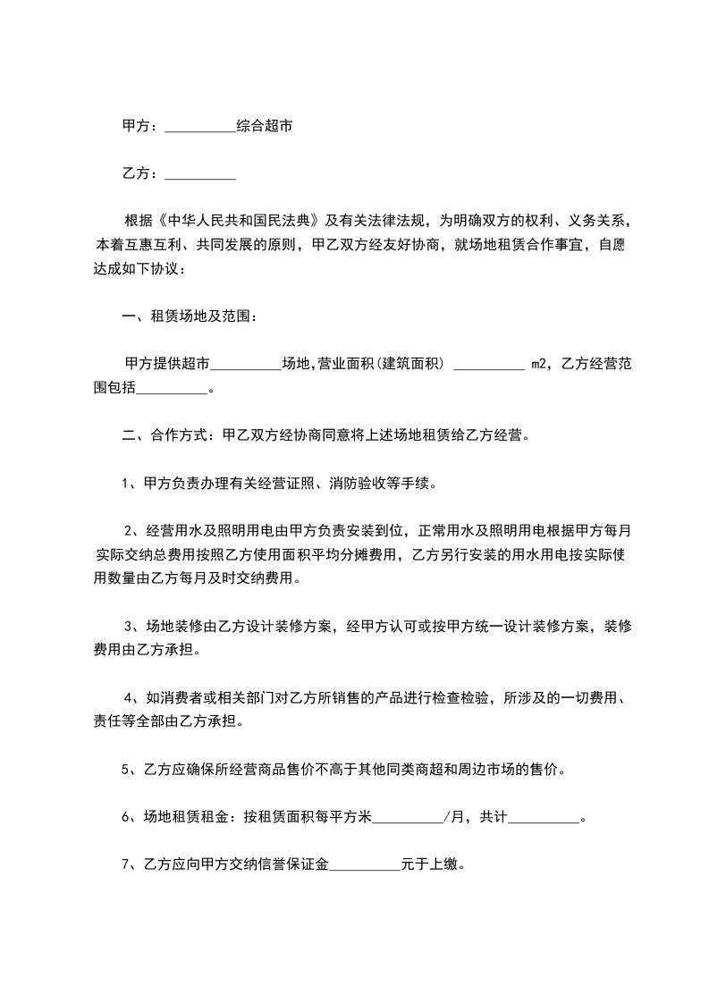 超市场地租赁合同通用范本