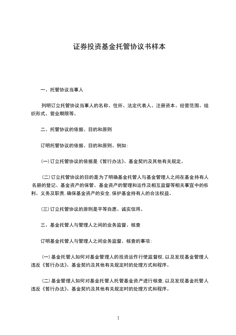 (一)订立托管协议的依据是《暂行办法》、基金契约及其他有关规定。