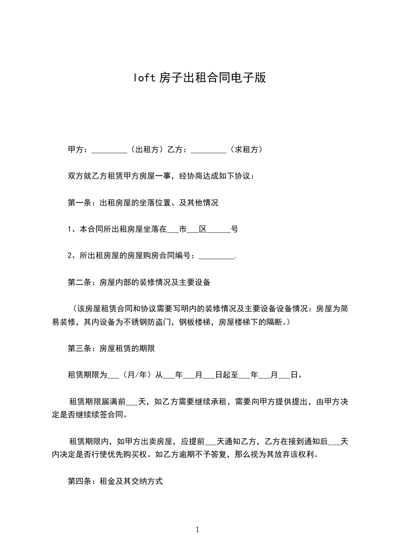 1、本合同所出租房屋坐落在___市___区______号