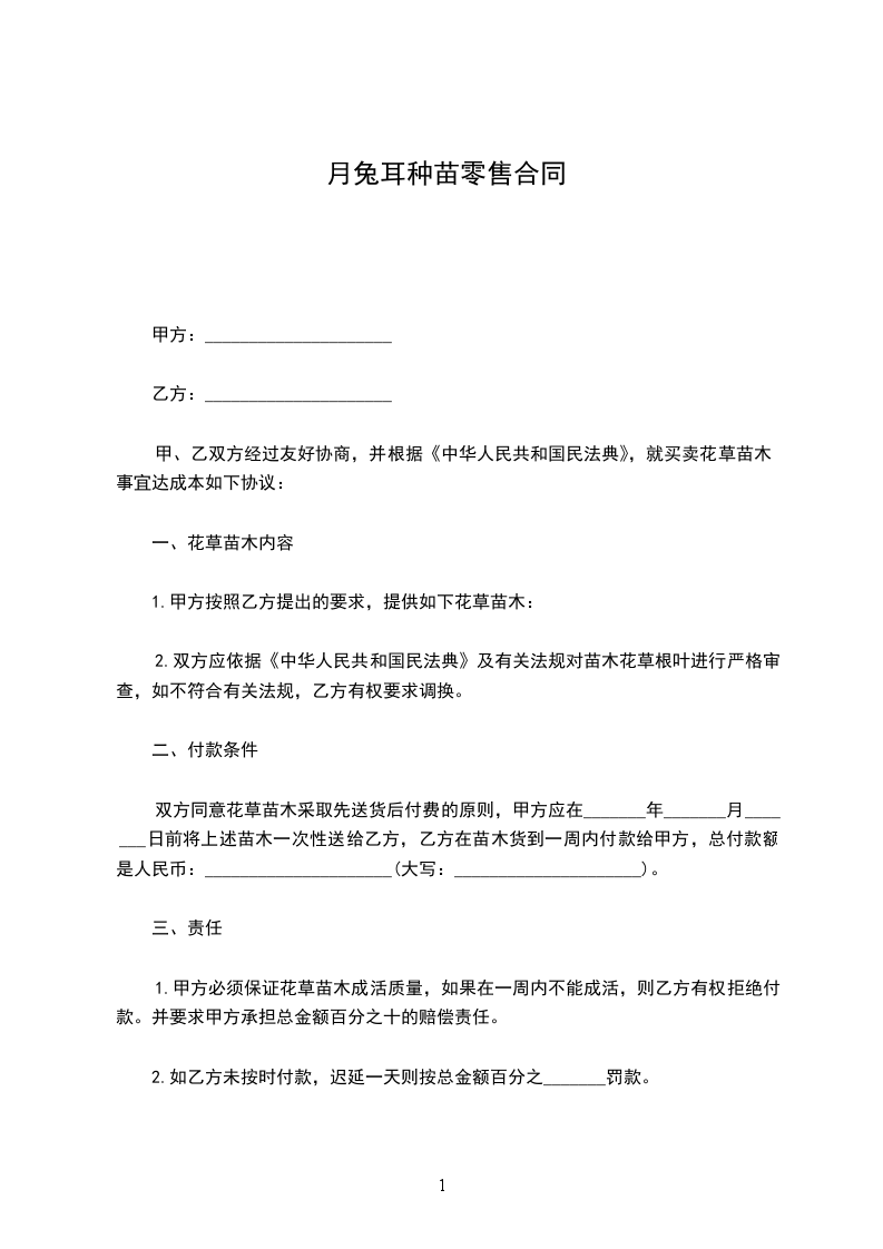 甲、乙双方经过友好协商,并根据《中华人民共和国民法典》,就买卖花草苗木事宜达成本如下协议: