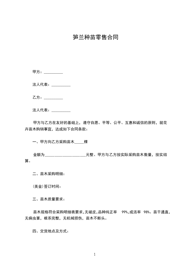 一、甲方向乙方采购苗木_____棵