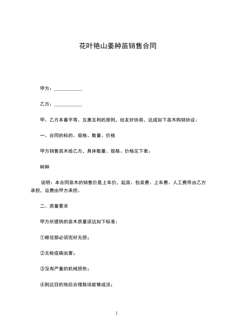 一、甲方向乙方采购苗木_____棵,金额为________________________________________元整、甲方与乙方按实际采购苗木数量,按实际结算。