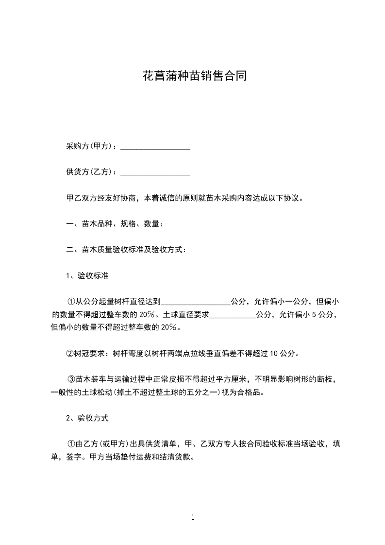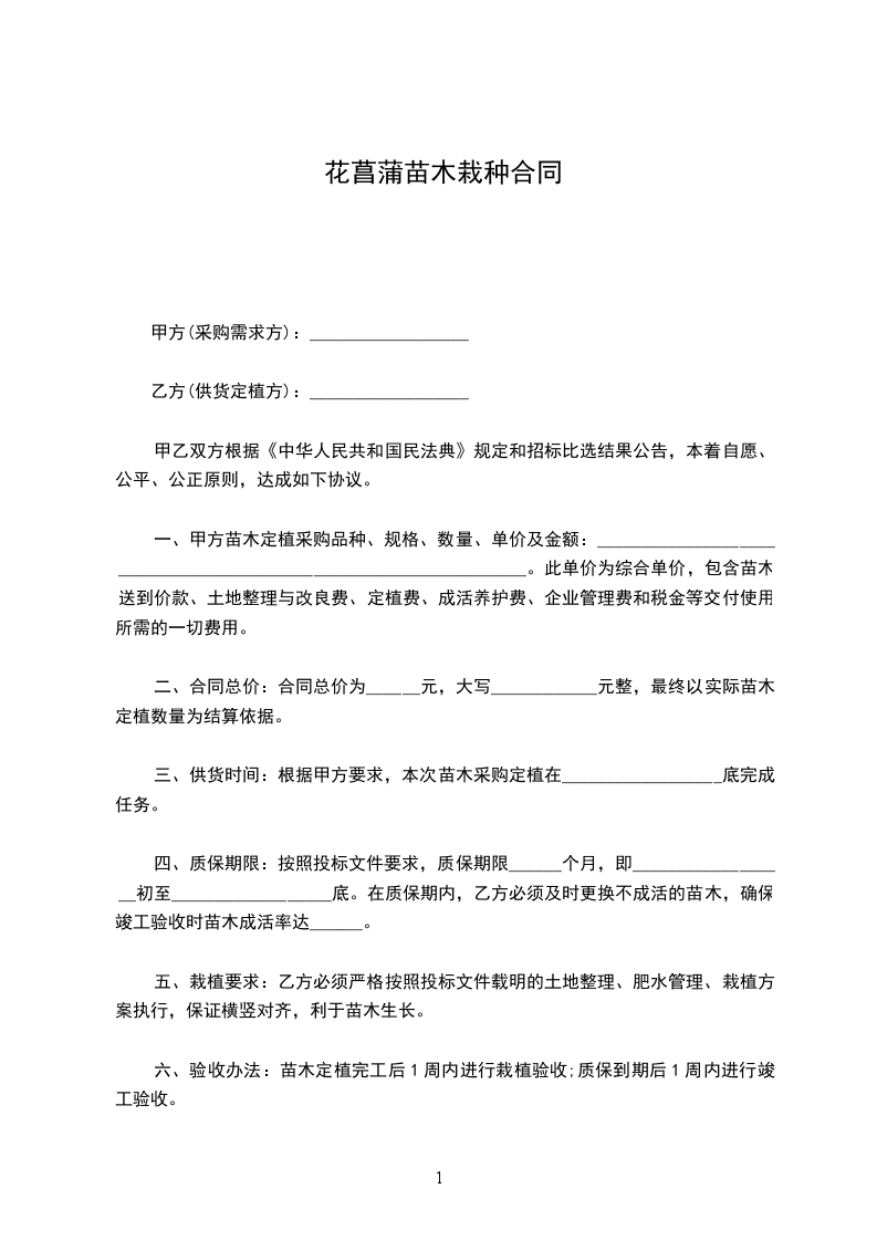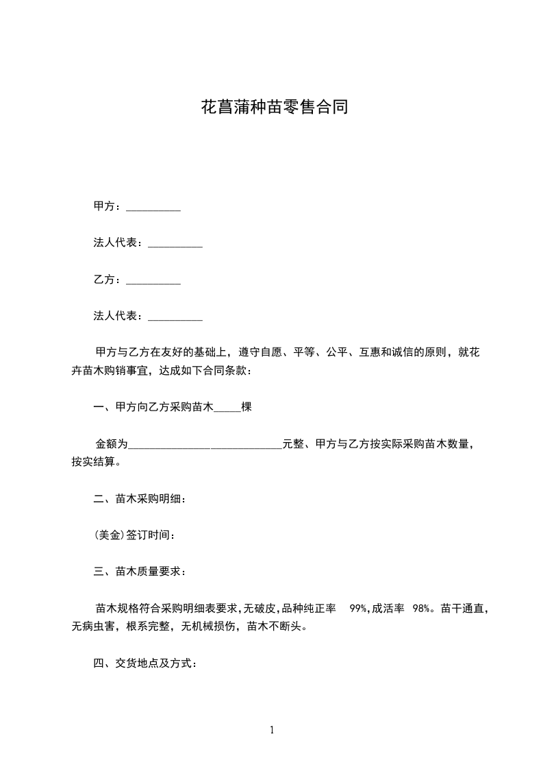 一、甲方向乙方采购苗木_____棵