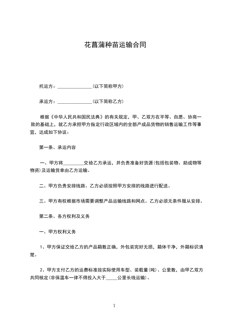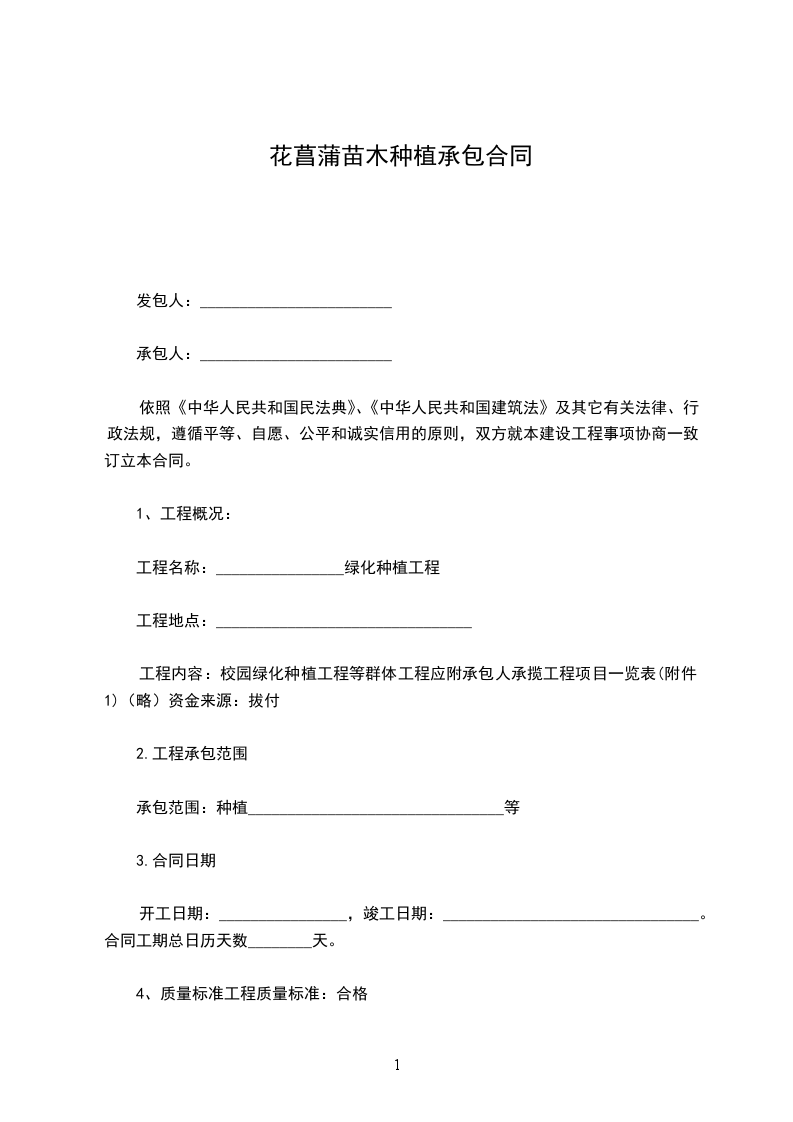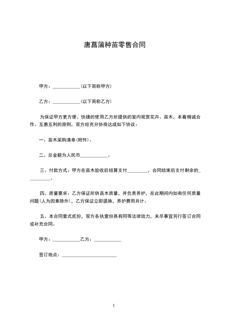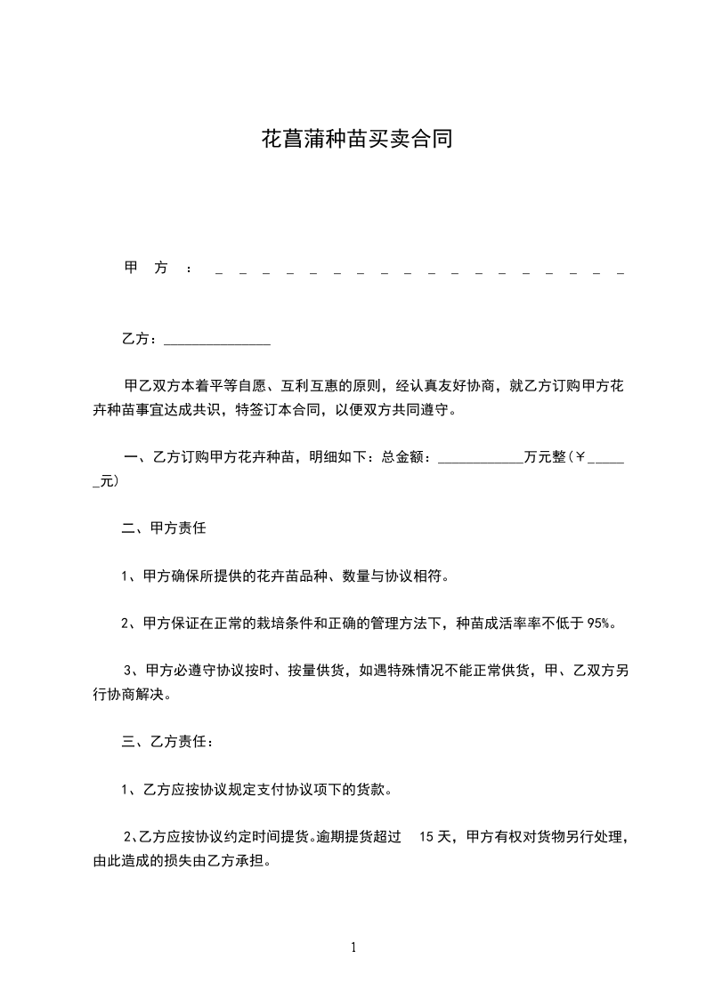 一、甲方向乙方采购苗木_____棵