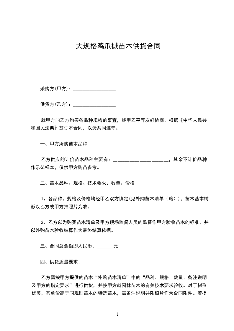 (1)如期、如质、如量按合同第二条第二款附表中的数量选苗、起挖、包扎、吊装及运输至甲方地点。